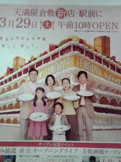 明日オープンの倉敷天満屋の前を通ったので、写メでパシャリ