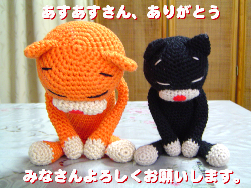 このあみねこちゃん達は、私のネッ友でもあり、ぱんかんのお仕事も手伝ってくれてるあすあすさんに作ってもらいました。