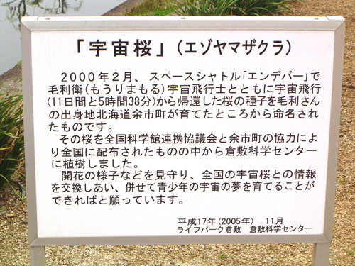 全国に配布された宇宙桜の一部が、2005年11月にここ倉敷の倉敷科学センターに来ました。